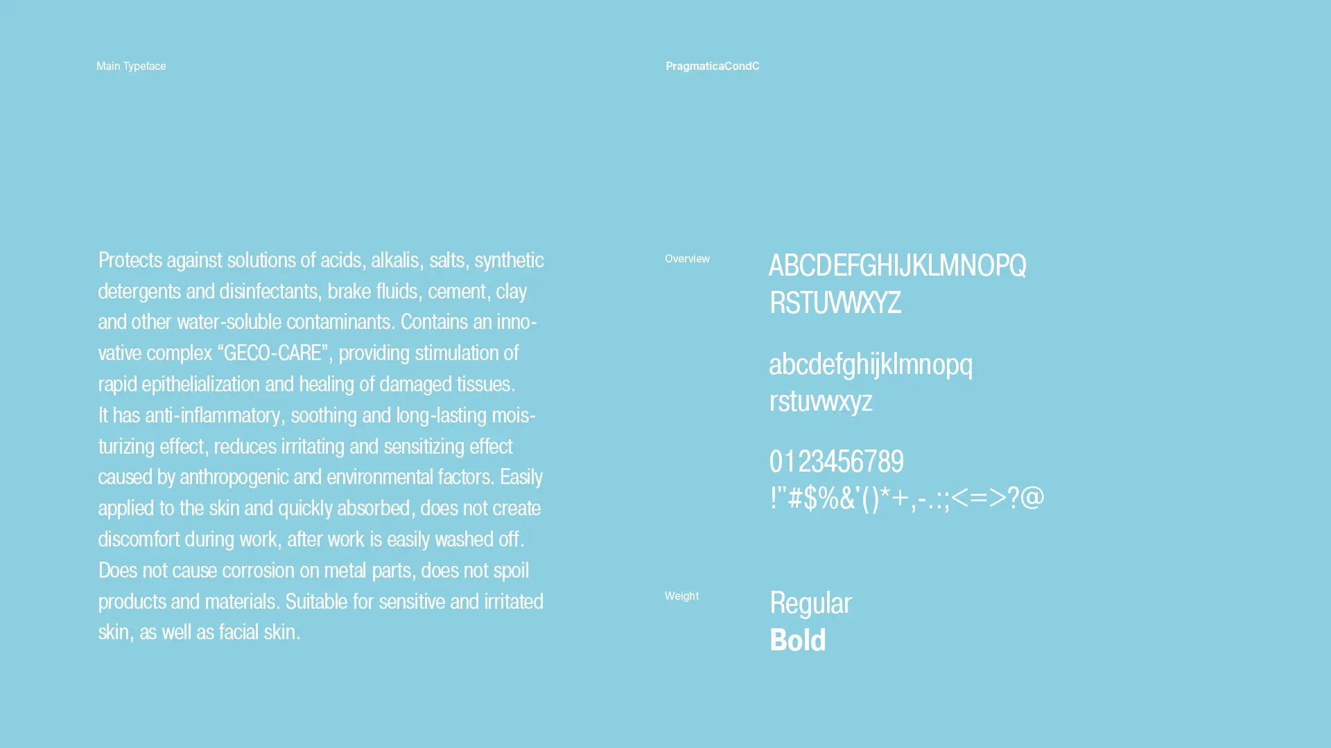 Develop a bright, clear naming, identity, packaging, and catalog for a product line of personal protective items, including creams, pastes, and sprays designed to protect, cleanse, and care for the skin in challenging industrial environments.